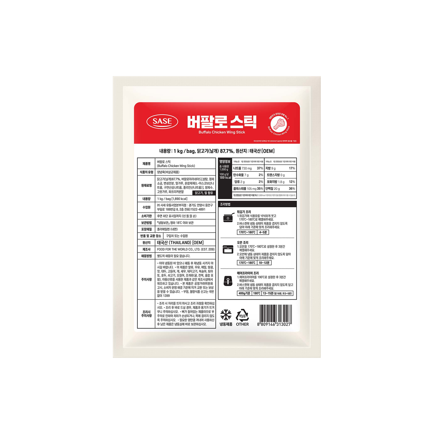 | 원재료 및 함량 | 닭날개 88.49%, 칠리분말, 전분 등 |